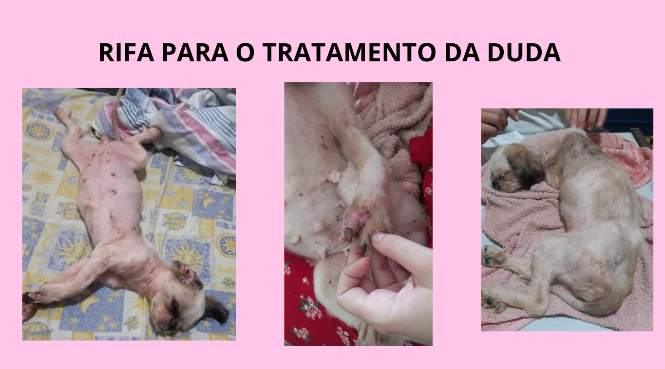 Essa rifa foi criada com o intuito de nos ajudar no tratamento da Duda. Ela é uma shitzu de 7 anos que foi resgatada de maus tratos, onde ela estava bem debilitada. Nós fizemos vários exames e conseguimos tratar a anemia dela e ela esta evoluindo bastante. Porém, ela esta com um suposto tumor maligno na pata e no olho esquerdo, onde chegou a um nível que só consegue ser retirado com cirurgia para não ter risco de dar metastase pelo resto do corpo. Não sabemos quanto de fato ainda teremos que gastar com esse tratamento, pois além da cirurgia, ainda vamos ter que passar por todos os exames.